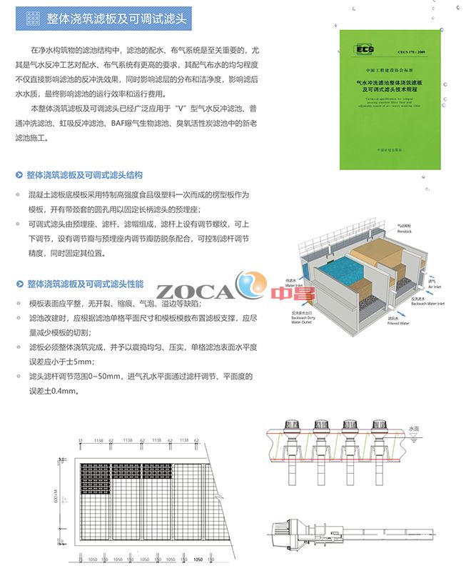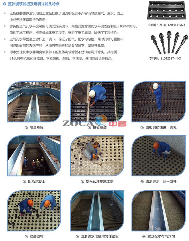 整體澆筑濾板及可調式濾頭